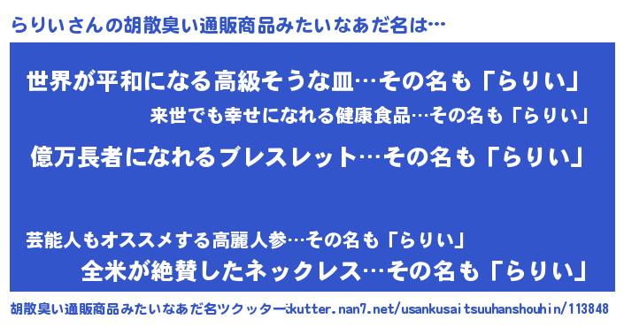 | 意味不明あだ名 | 『ペロリンらりい』『らりいフォーエバー』 |