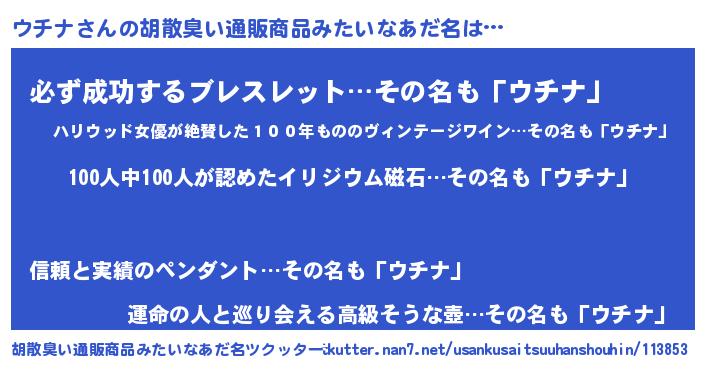| 男性向けラノベタイトル風あだ名 | 『緋弾のウチナ』『ウチナの憂鬱』 |