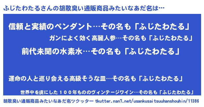 | 意味不明あだ名 | 『ヨモギ科ふじたわたる属』 |