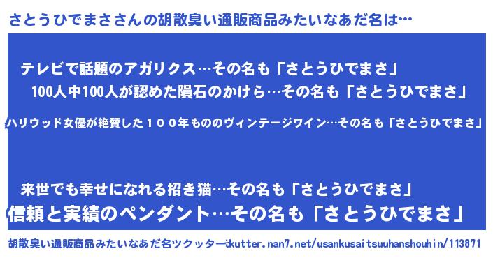 | 意味不明あだ名 | 『住所不定無職さとうひでまさ(13歳)』 |