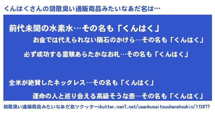 | 男性向けラノベタイトル風あだ名 | 『緋弾のクンハク』『くんはくの憂鬱』 |