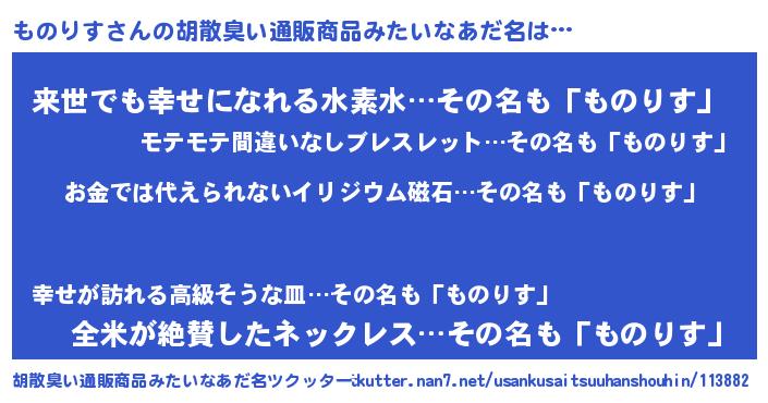 | ヘコむあだ名 | 『ものりす(笑)』『ものっ子』 |