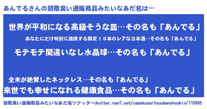 | 意味不明あだ名 | 『ペロリンあんでる』『永久保存あんでる』 |