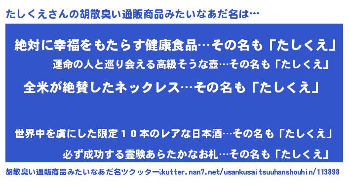 | 意味不明あだ名 | 『とにかく怪しいたしくえ』 |