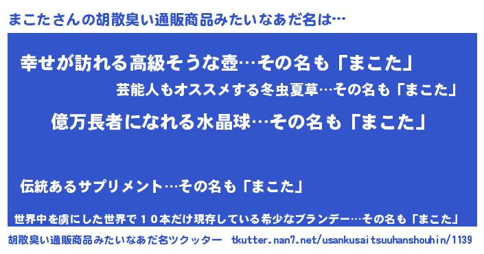 | ヘコむあだ名 | 『まこにゅー』『牛乳』『まこっ子』 |