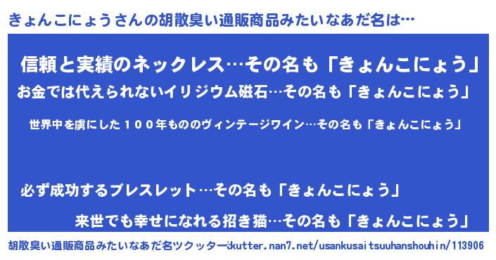 きょんこにょうさんの胡散臭い通販商品みたいなあだ名をツクッター!