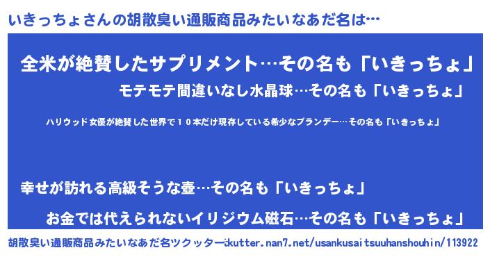 | 意味不明あだ名 | 『住所不定無職いきっちょ(89歳)』 |