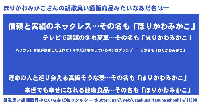 | 意味不明あだ名 | 『住所不定無職ほりかわみかこ(74歳)』 |