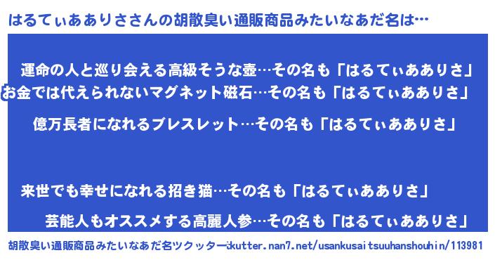 | 肩書あだ名 | 『はるてぃあありさ大佐』 |