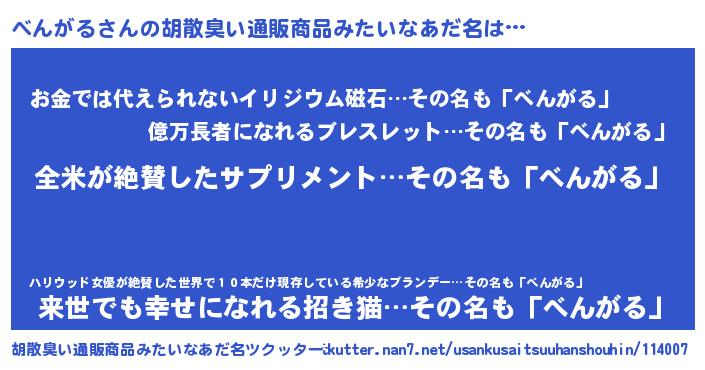 | 意味不明あだ名 | 『とにかく怪しいべんがる』 |