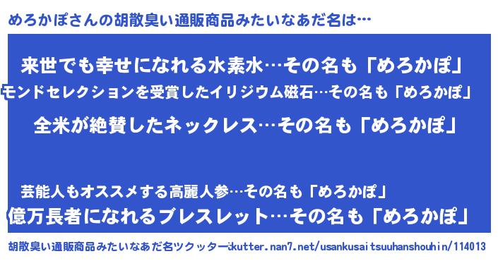 | ヘコむあだ名 | 『めろっ子』『めろかぽ(遠い目)』 |