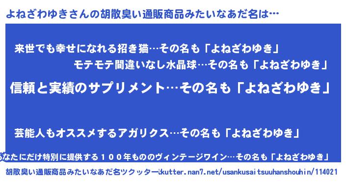| 意味不明あだ名 | 『とにかく怪しいよねざわゆき』 |
