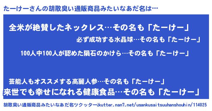 | ヘコむあだ名 | 『たーぷりん』『たーけー(苦笑)』 |