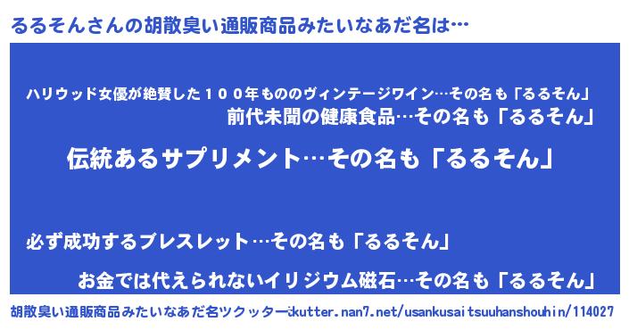 | 意味不明あだ名 | 『とにかく怪しいるるそん』 |