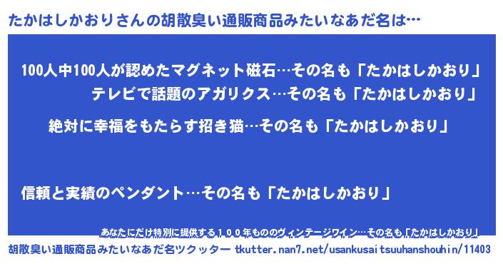 | ヘコむあだ名 | 『たかはしかおり(笑)』『たかお』 |
