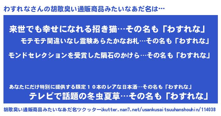 | 男性向けラノベタイトル風あだ名 | 『ノーゲーム・ノーワスレナ』 |