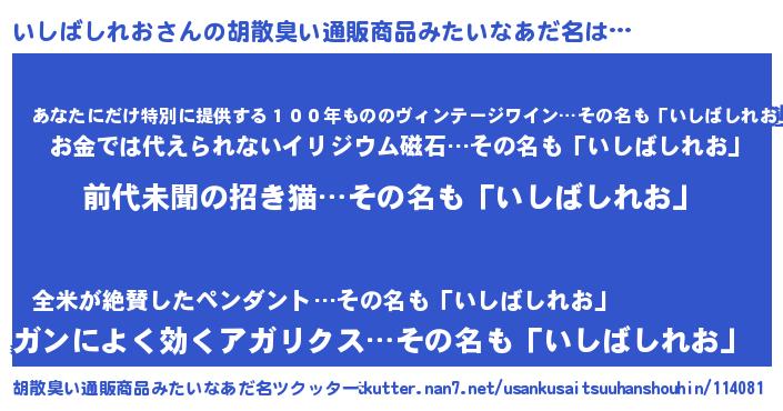 | ヘコむあだ名 | 『いしばしれお(小並感)』『いしを』 |
