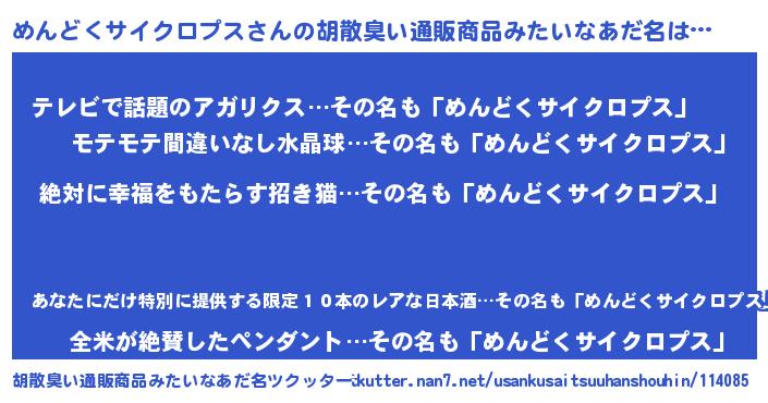 | 意味不明あだ名 | 『永久保存めんどくサイクロプス』 |