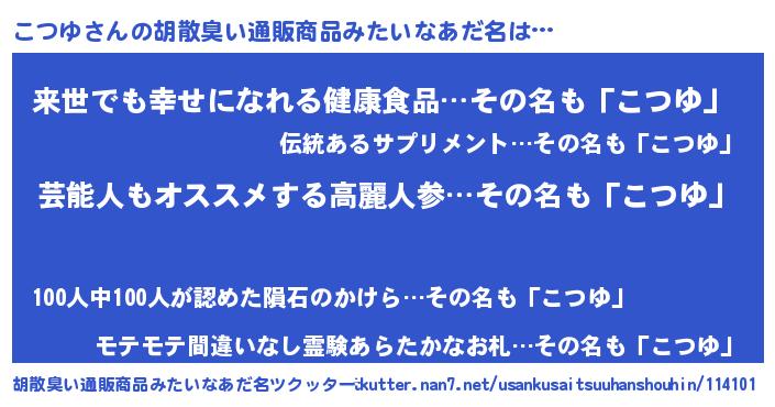 | 意味不明あだ名 | 『自称こつゆ』『永久保存こつゆ』 |