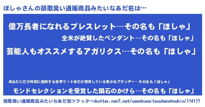 | 意味不明あだ名 | 『自称ほしゃ』『ペロリンほしゃ』 |