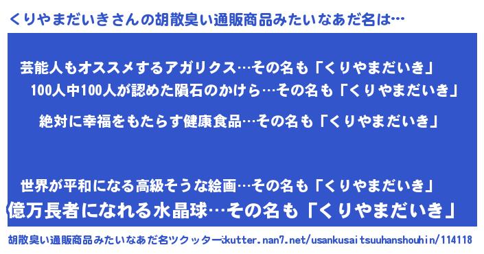 | 欧米人風あだ名 | 『ダルビッシュくりやまだいき』 |