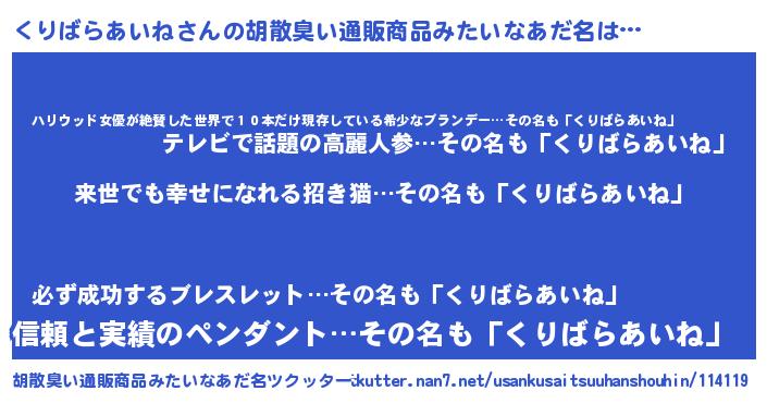 | ヘコむあだ名 | 『くりばらあいね(笑)』『くりぷりん』 |