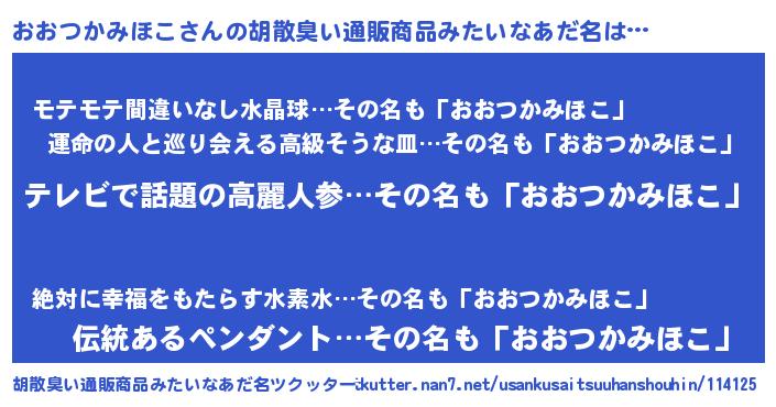 | 意味不明あだ名 | 『自称おおつかみほこ』 |