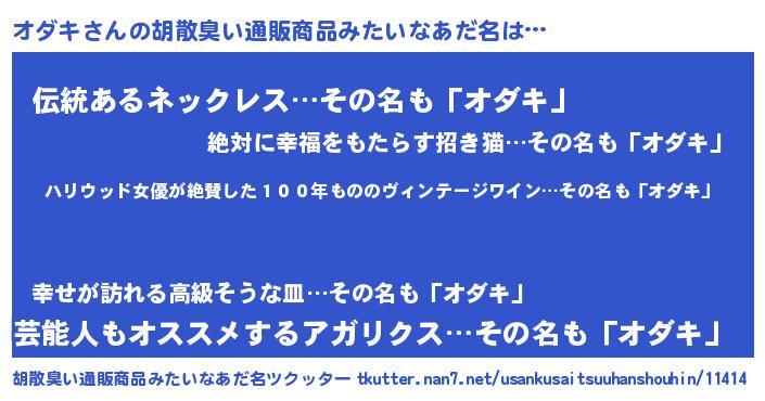 | ヘコむあだ名 | 『オダ太郎』『オダキ(笑)』 |