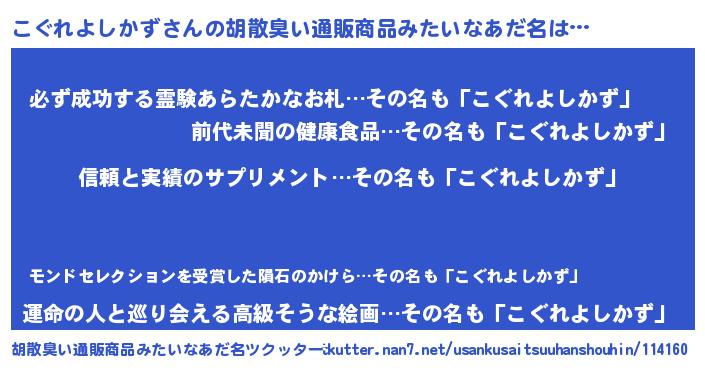 | 男性向けラノベタイトル風あだ名 | 『ダンジョンにこぐれよしかずを求めるのは間違っているだろうか』 |