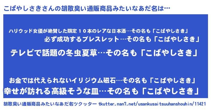 | 意味不明あだ名 | 『自称こばやしさき』 |