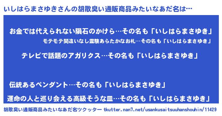 | 肩書あだ名 | 『いしはらまさゆき総統』 |