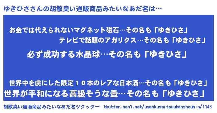| 意味不明あだ名 | 『ペロリンゆきひさ』『自称ゆきひさ』 |