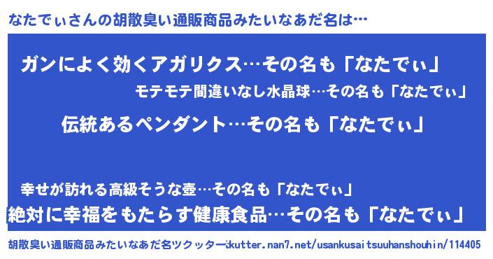 | ヘコむあだ名 | 『なたぷりん』『なたでぃ(苦笑)』 |