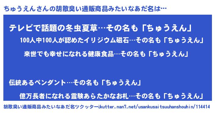 | 意味不明あだ名 | 『永久保存ちゅうえん』『自称ちゅうえん』 |