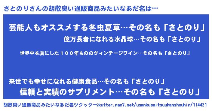 | 意味不明あだ名 | 『住所不定無職さとのり(1歳)』 |