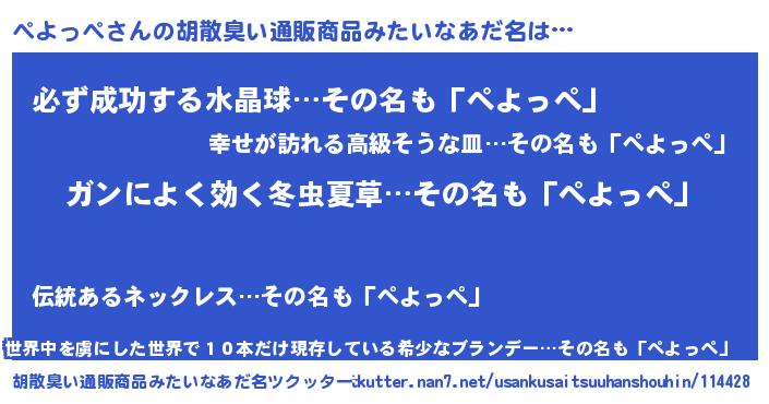 | 意味不明あだ名 | 『自称ぺよっぺ』『めかぶ科ぺよっぺ属』 |