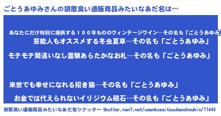 ごとうあゆみさんの胡散臭い通販商品みたいなあだ名をツクッター!