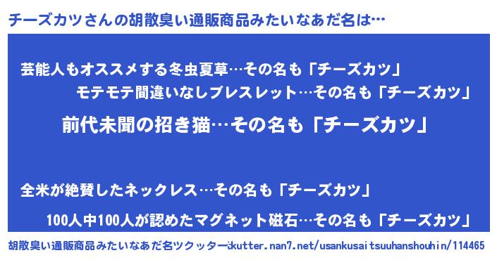 | 意味不明あだ名 | 『永久保存チーズカツ』『自称チーズカツ』 |
