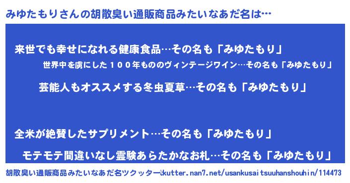 | ヘコむあだ名 | 『みゆたもり(遠い目)』『みゆもー』 |