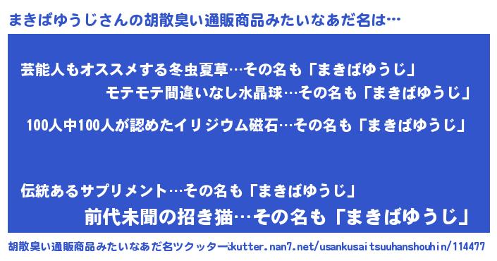 | ヘコむあだ名 | 『まきばゆうじ(苦笑)』『まきもー』 |