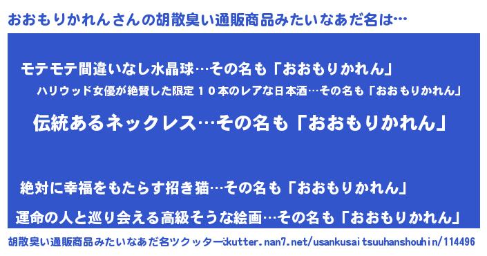 | 意味不明あだ名 | 『とにかく怪しいおおもりかれん』 |