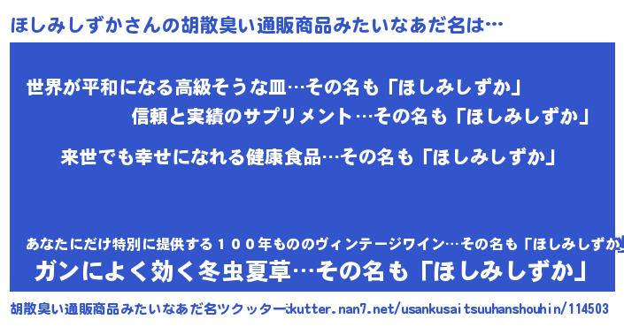 | ヘコむあだ名 | 『ほしみしずか(笑)』『なまこ酢』 |