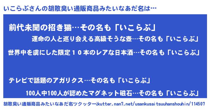 | 意味不明あだ名 | 『住所不定無職いこらぶ(53歳)』 |