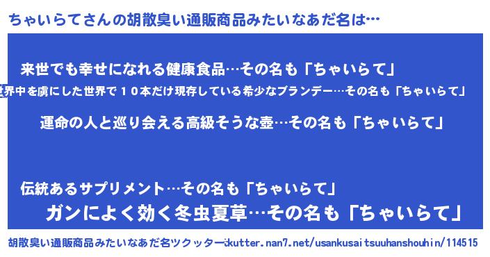| 意味不明あだ名 | 『ちゃいらてフォーエバー』 |