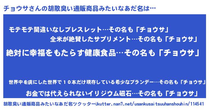 | ヘコむあだ名 | 『チョウサ(爆)』『チョにー』 |