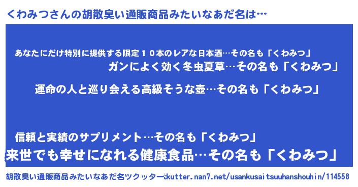 | 意味不明あだ名 | 『くわみつフォーエバー』『自称くわみつ』 |
