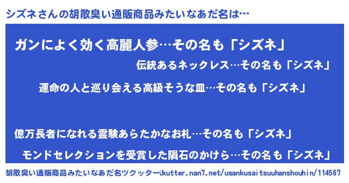 | 意味不明あだ名 | 『シズネフォーエバー』『自称シズネ』 |