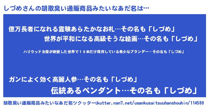 | 意味不明あだ名 | 『住所不定無職しづめ(74歳)』 |