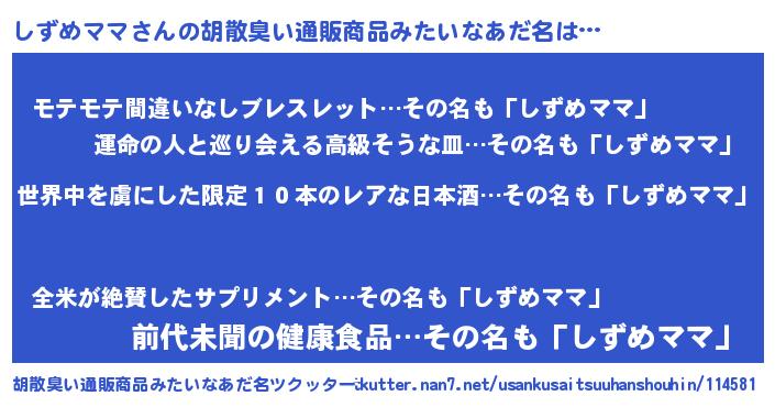 | ヒーロー風カッコイイあだ名 | 『仮面シズダー』『スーパーシズメママ』 |