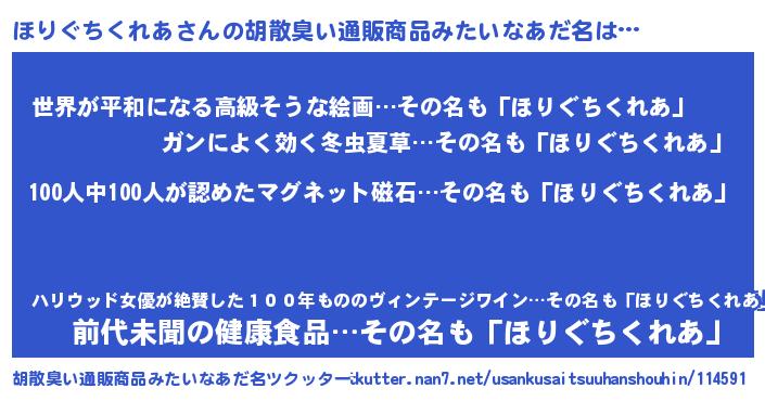 | ヘコむあだ名 | 『つくし』『ほりぐちくれあ(小並感)』 |